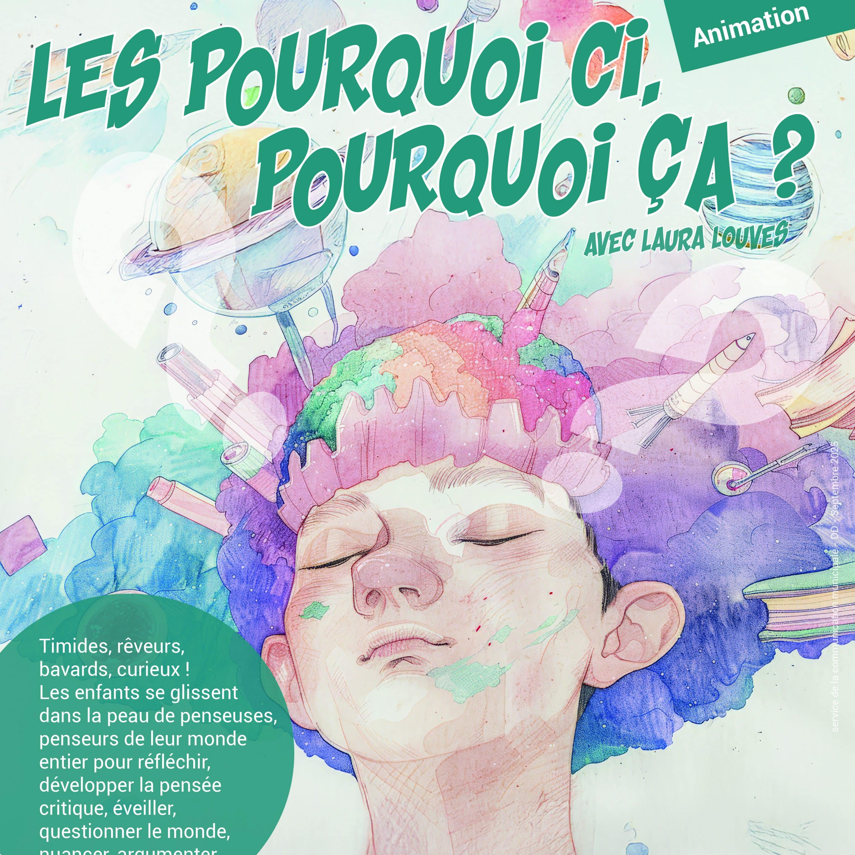 Timides, rêveurs, bavards, curieux ! Les enfants se glissent dans la peau de penseuses, penseurs de leur monde entier pour réfléchir, développer la pensée critique, éveiller, questionner le monde, nuancer, argumenter, écouter, coopérer.